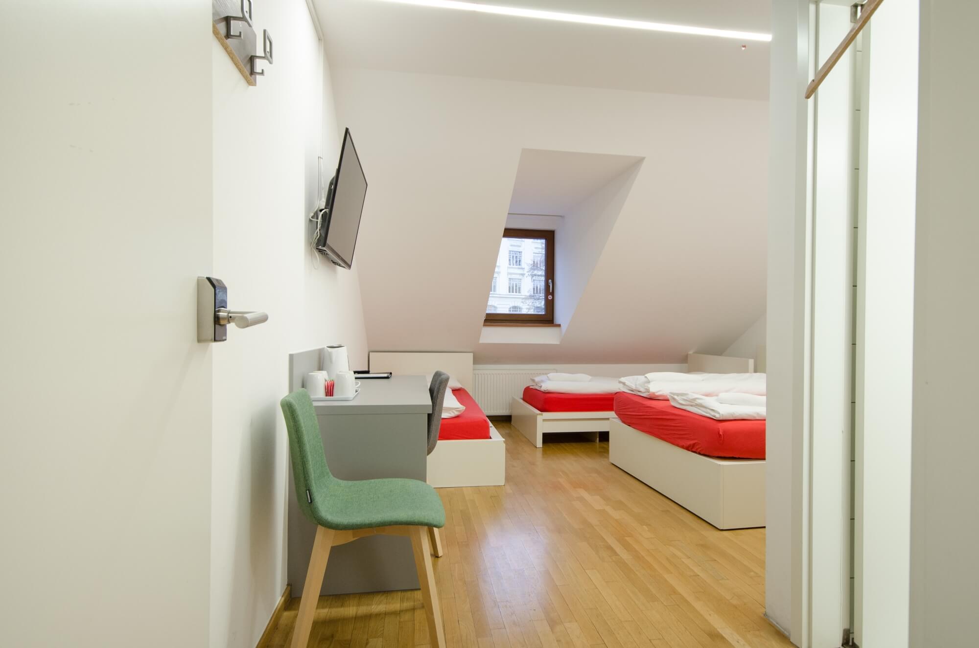 20m² quadruple room with a private bathroom overlooking the Dragon Bridge and Ljubljanica river.