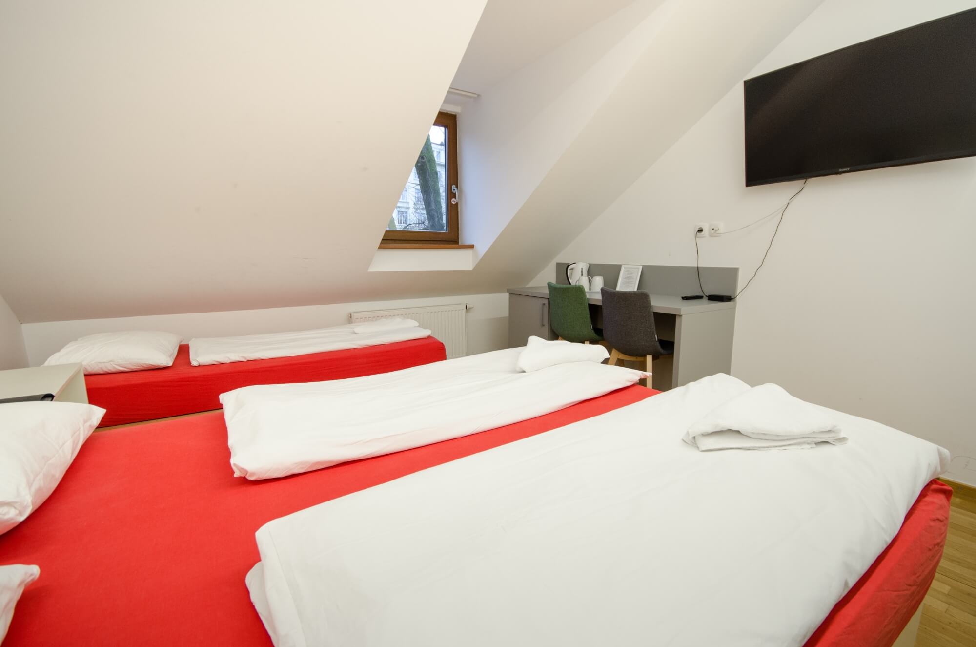 - one large double bed and one single bed,